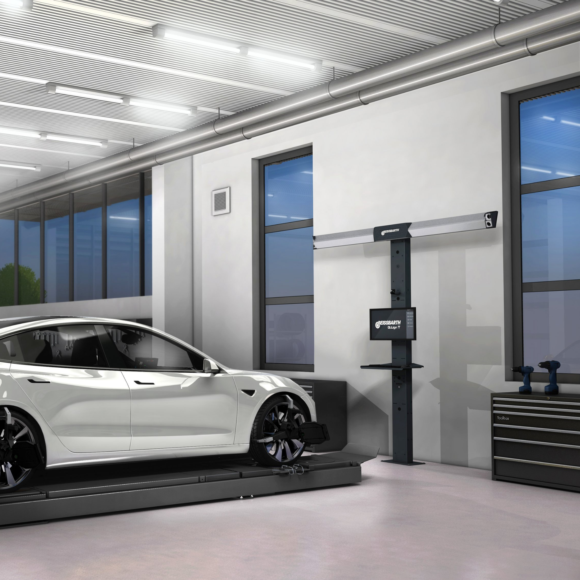 BEISSBARTH Q.LIGN T.41 QG Wheel Alignment Floor-Mounted Support Column, Turnplates & Q.Grip Wheel Clamps. Operation via 27" Monitor
