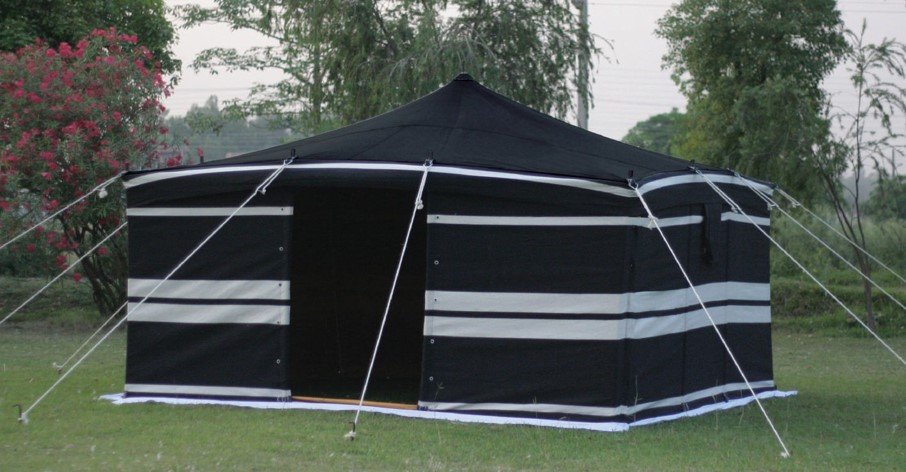 Arabic Luxury Style 4 x 4 Yards Black & White Camping Tent with Iron Sticks for Outdoors, Desert and Party