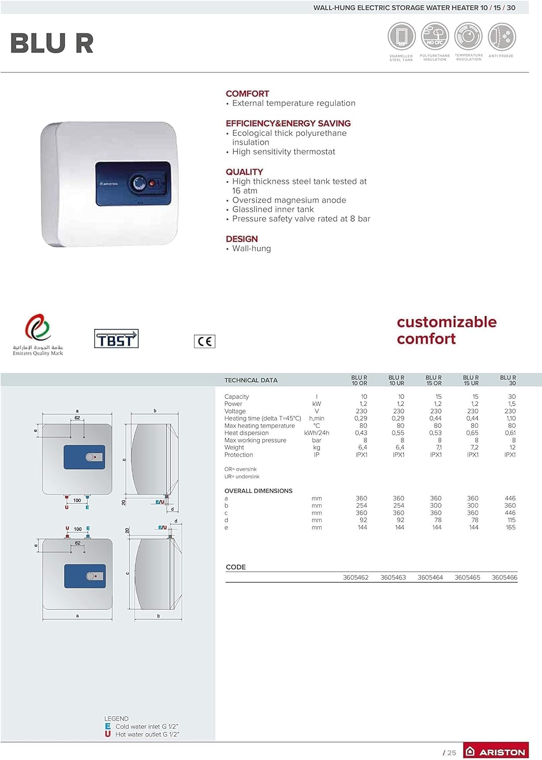 Ariston® 10L/15L/30L Instant Water Heater BLU R, 1.2 kW for Kitchen & Bathroom Made in Italy with 5 Years Warranty, Express Installation Available