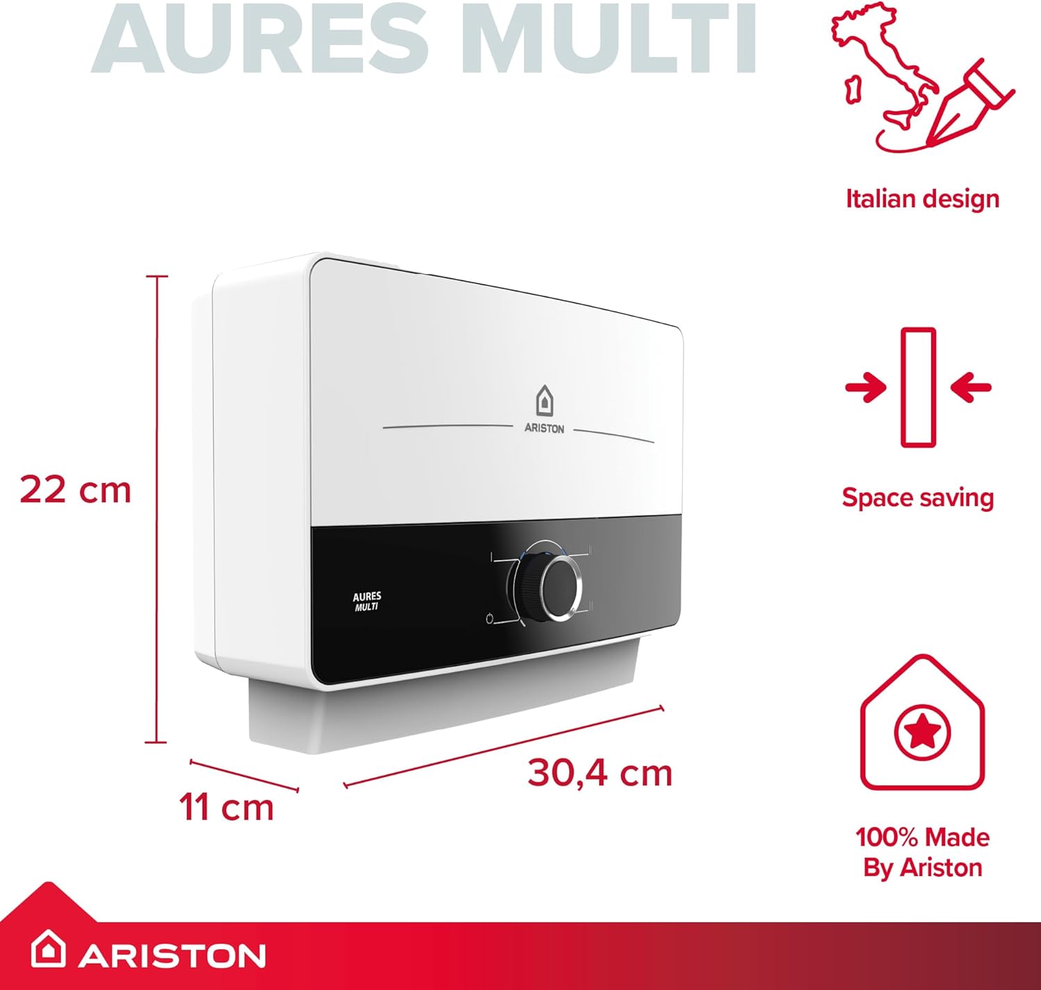 Ariston® 7.7 kW Instant Water Heater, Made in Italy Aures Multi for Bathroom & Kitchen with 5 Years Warranty, Express Installation Available