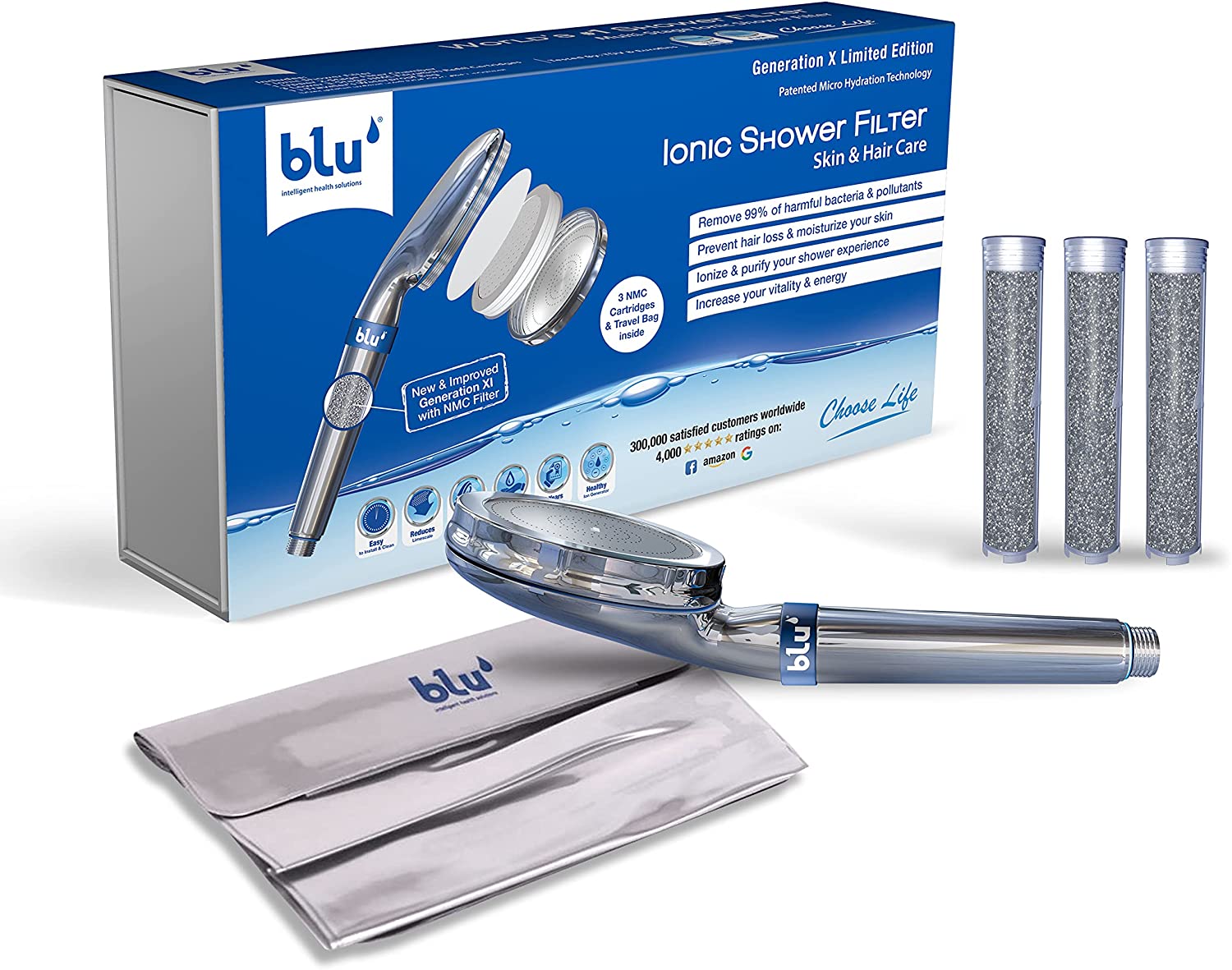 blu Shower Filter with Free Installation Handheld Chrome Color for Skin & Haircare Removes Chlorine & Harmful Pollutants, Prevent Hair Loss & Moisturize your Skin