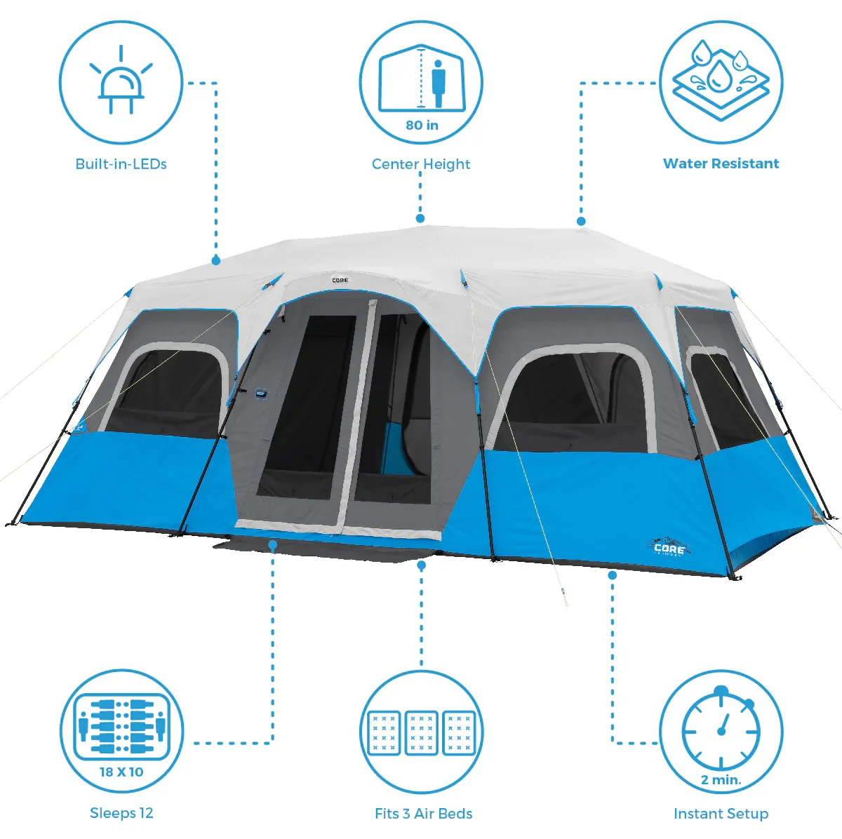 Core Equipment 12 Persons 18 x 10 Feet Lighted Instant Cabin Camping Tent