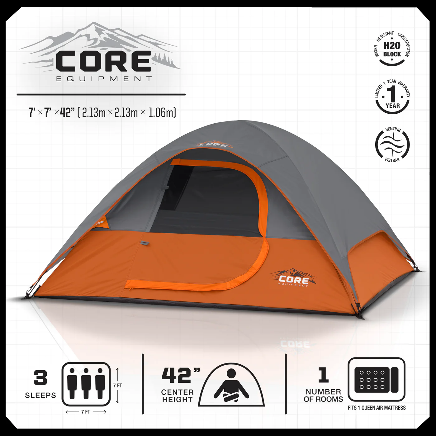 Core Equipment 3 Persons 7 x 7 Feet Dome Camping Tent