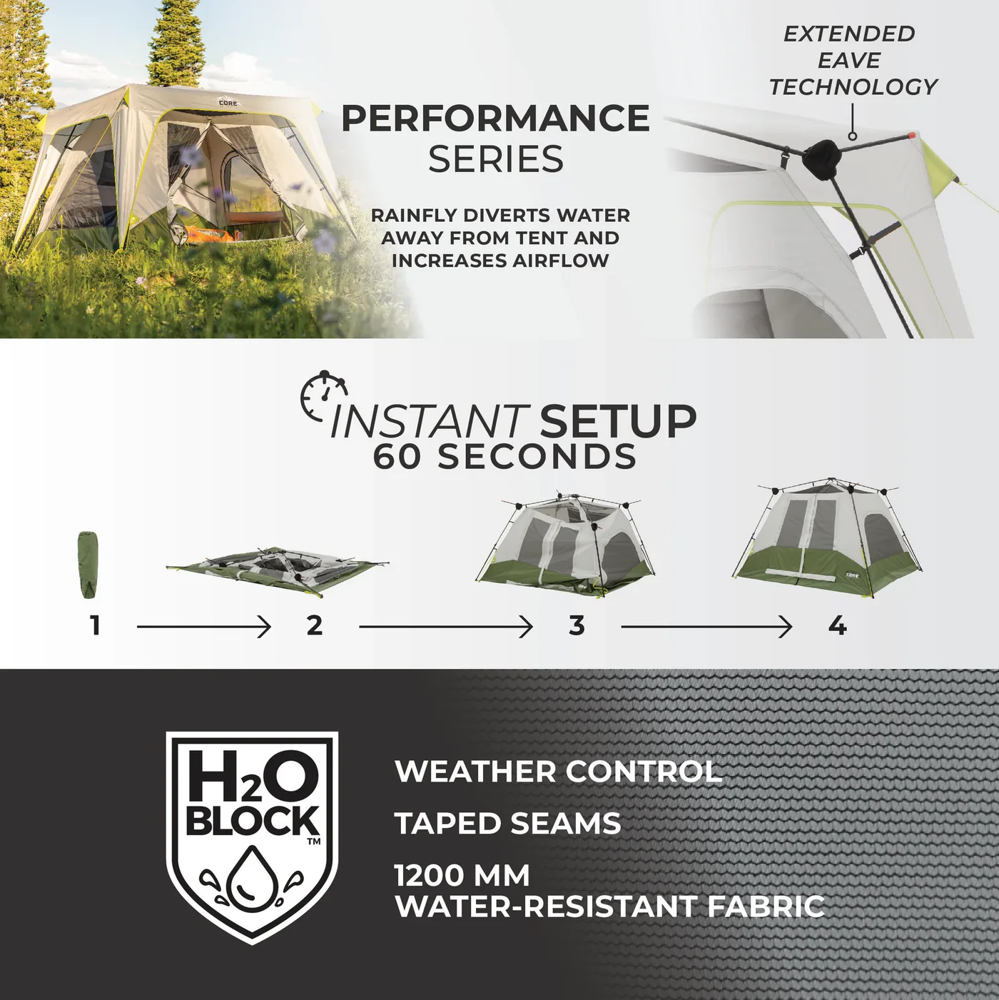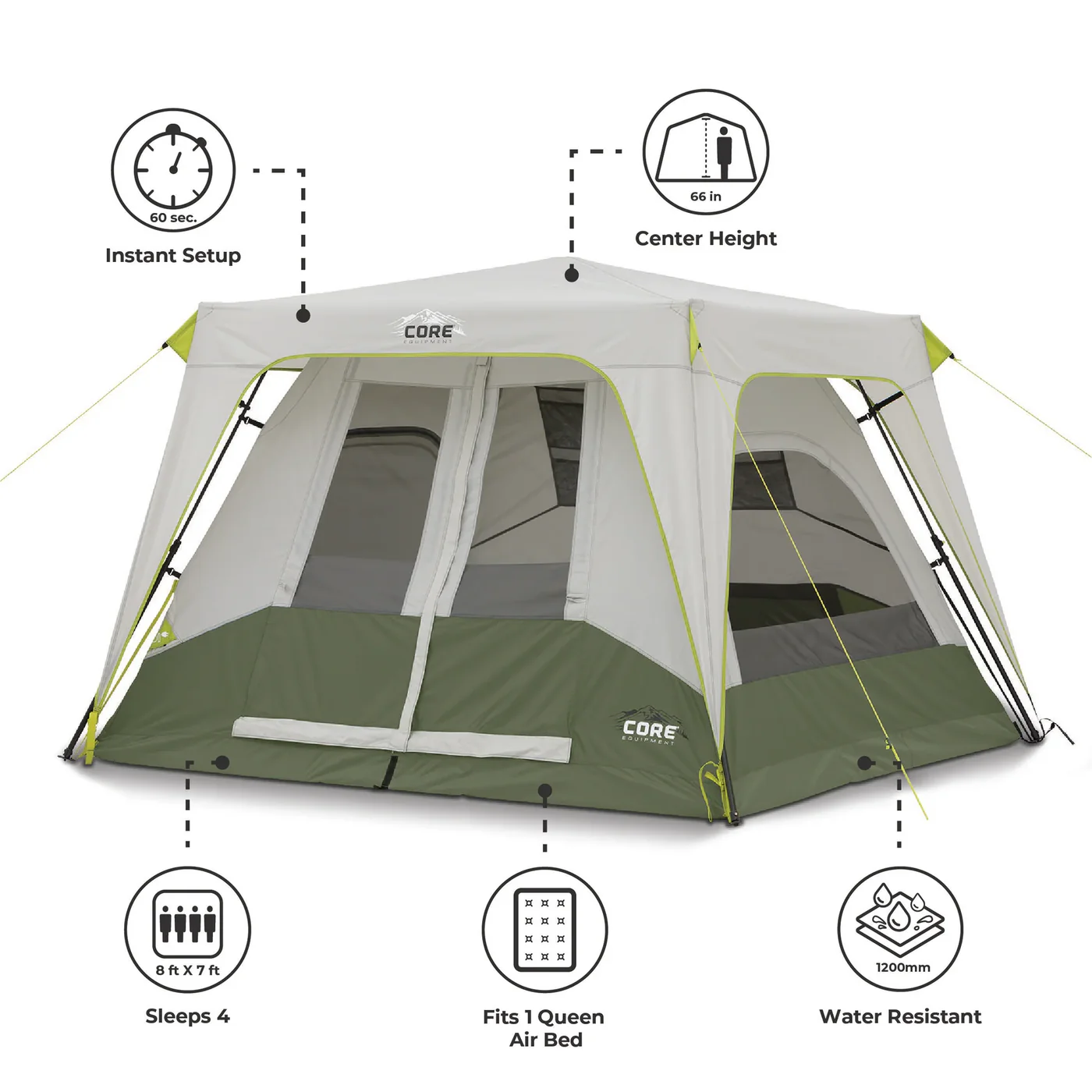 Core Equipment 4 Persons 8 x 7 Feet Instant Cabin Camping Performance Tent