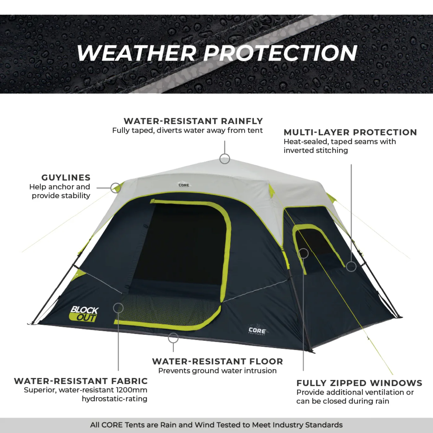Core Equipment 9 Persons 11 x 9 Feet Instant Cabin Camping Blockout Tent